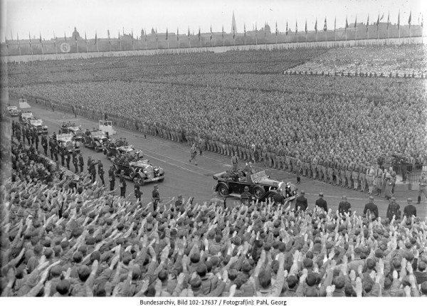 Die Kulisse des Poststadions nutzen auch die Nationalsozialisten für ihre Zwecke. Neben staatlich unterstützten Sportveranstaltungen finden im Poststadion politische Aktivitäten statt, unter anderem Kundgebung am Tag der Arbeit 1936 im Poststadion mit Adolf Hitler, Hermann Göring und der Hitlerjugend.